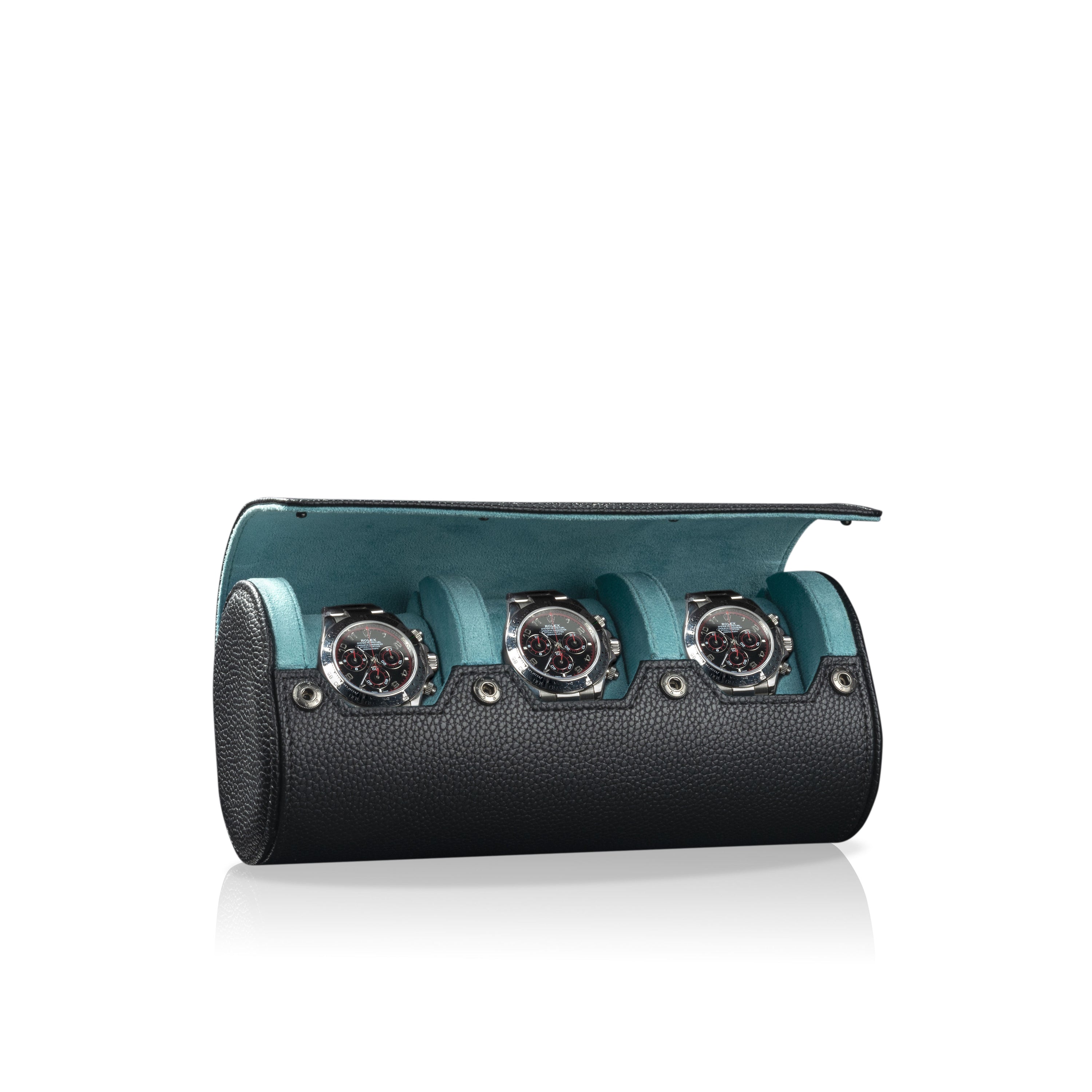 Charles Triple Watch Roll Black & Turquoise