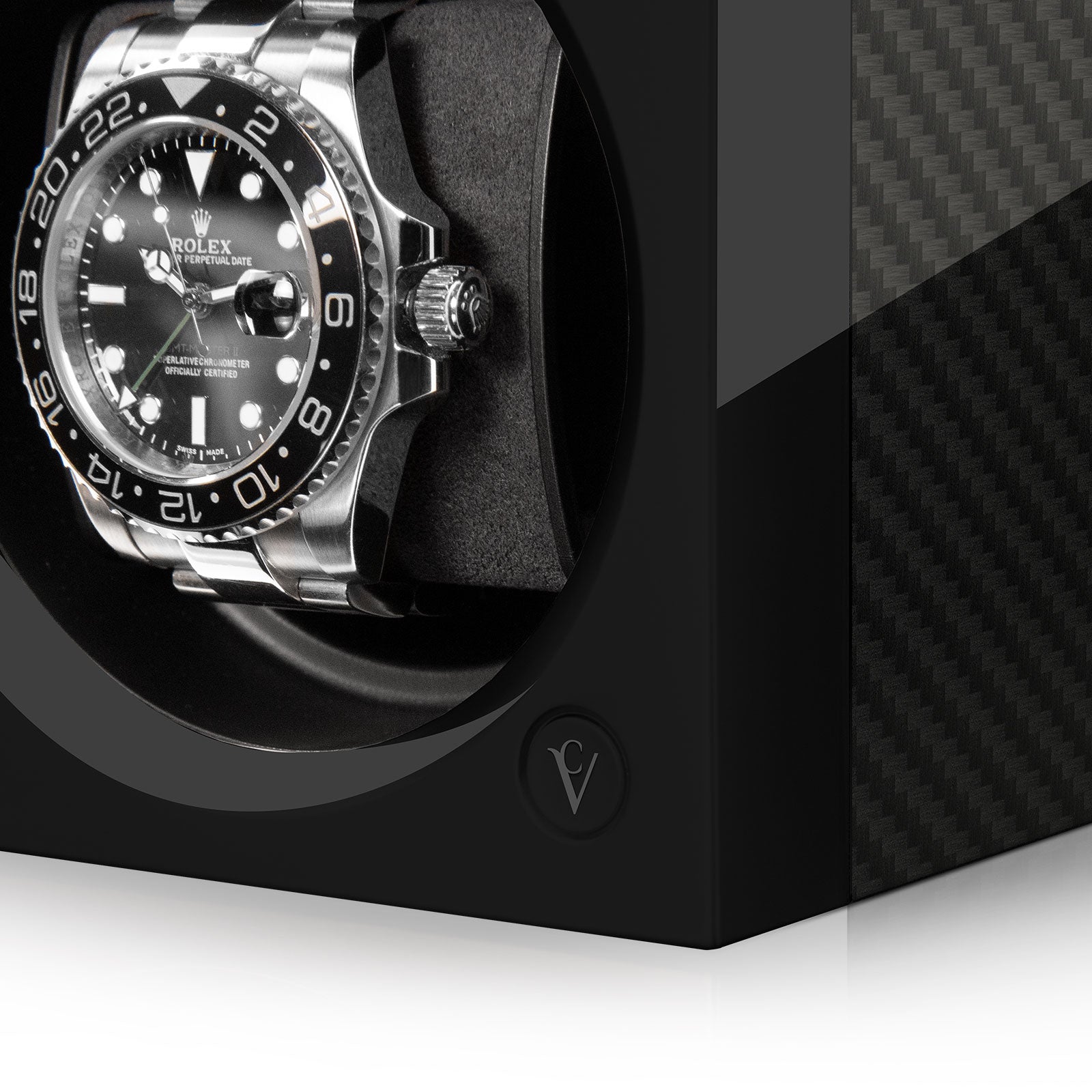 A single watch winder that combines everything that makes Chronovision stand out in a compact form. The extremely quiet drive powered by an independent motor that gently moves each watch with the correct direction of rotation and number of revolutions. The intuitive control via smartphone app. The high-quality, individually configurable cases with their breathtakingly beautiful surfaces, which make every Chronovision watch winder a fascinating design object. Whether as a single winder or as an expandable system of intelligently communicating modules: The Chronovision One fascinates in all respects.