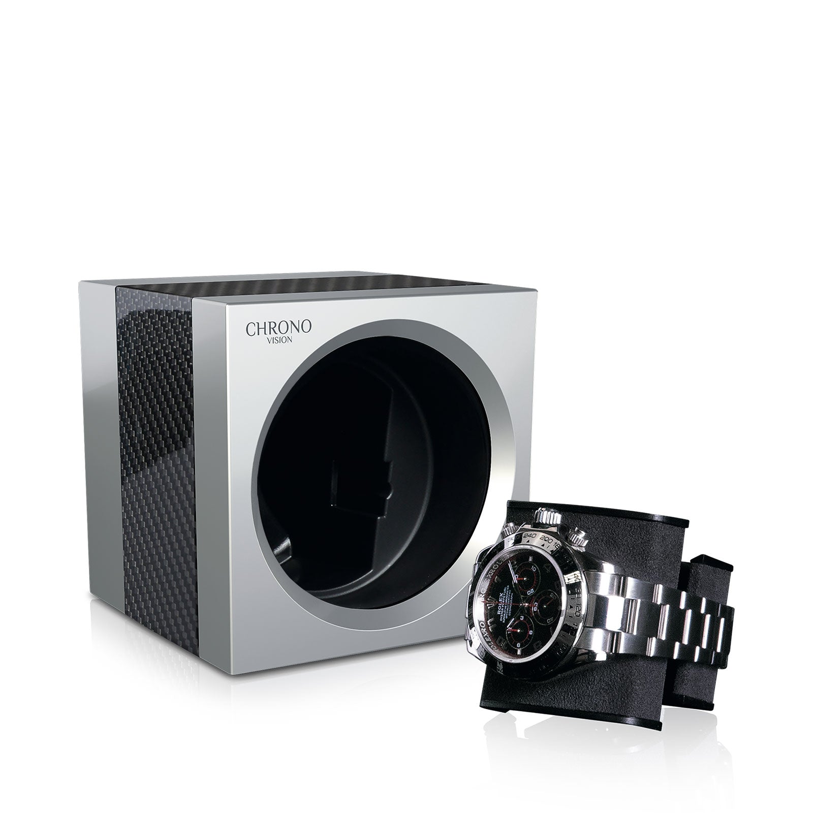 A single watch winder that combines everything that makes Chronovision stand out in a compact form. The extremely quiet drive powered by an independent motor that gently moves each watch with the correct direction of rotation and number of revolutions. The intuitive control via smartphone app. The high-quality, individually configurable cases with their breathtakingly beautiful surfaces, which make every Chronovision watch winder a fascinating design object. Whether as a single winder or as an expandable system of intelligently communicating modules: The Chronovision One fascinates in all respects.