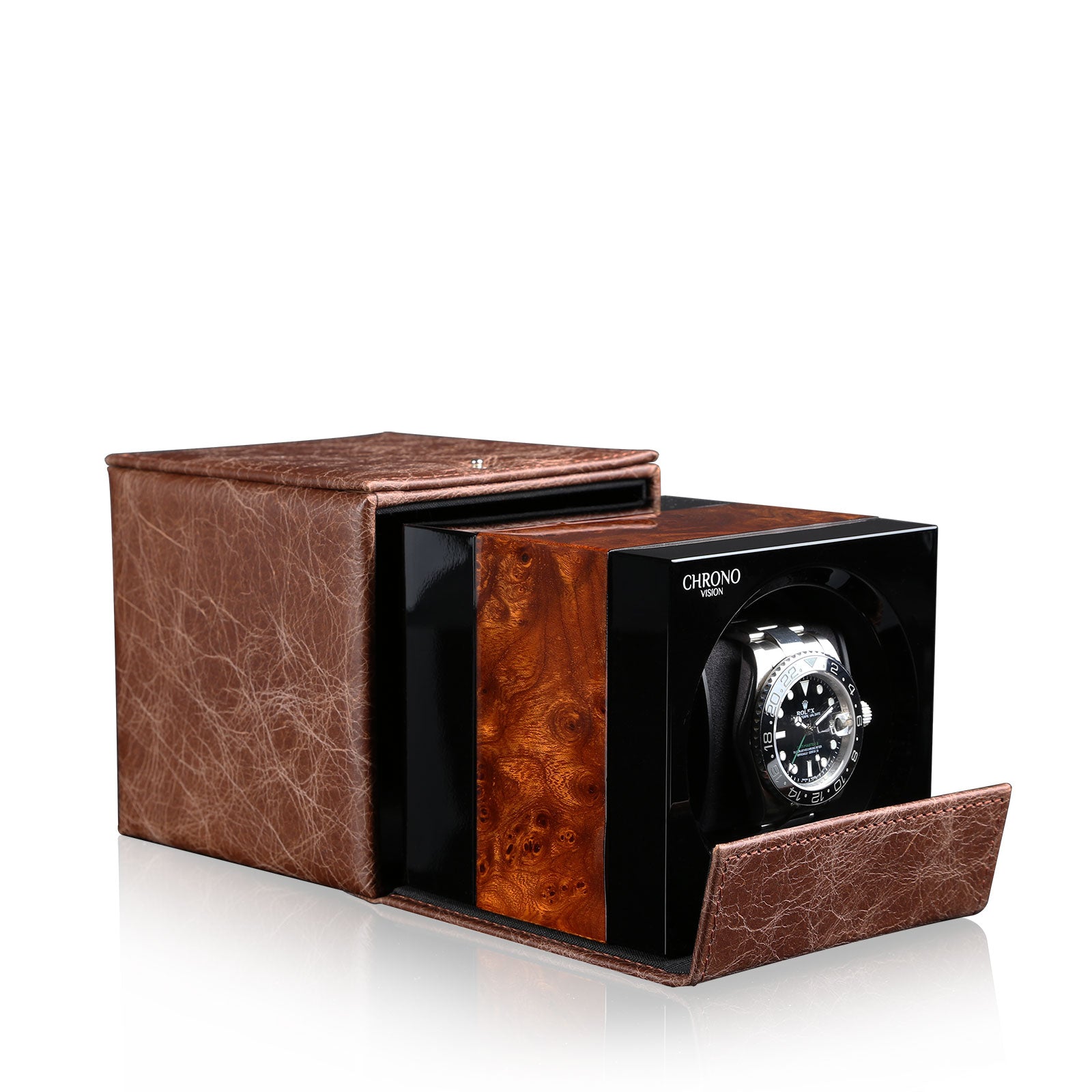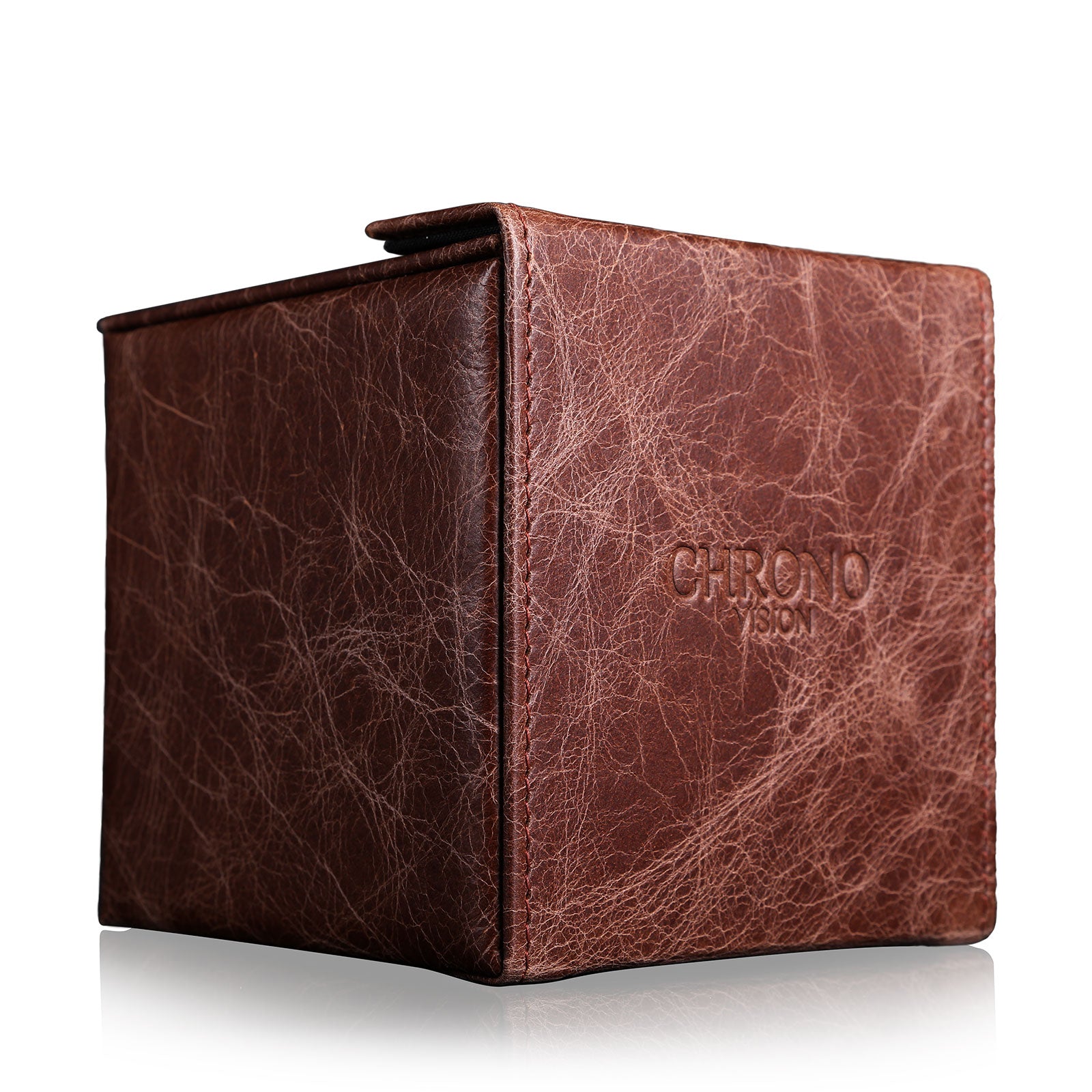 Travel in style with your Chronovision One and keep your automatic watches gently in motion while you are on the move. Your series One watch winder is ideally protected in the elegant travel box covered with the finest Italian nappa leather. You can choose from classic black or the brown vintage leather version.