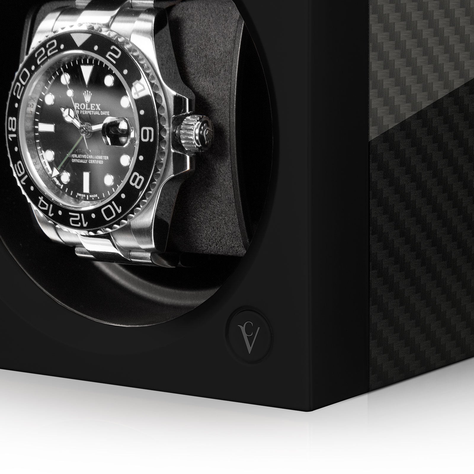 A single watch winder that combines everything that makes Chronovision stand out in a compact form. The extremely quiet drive powered by an independent motor that gently moves each watch with the correct direction of rotation and number of revolutions. The intuitive control via smartphone app. The high-quality, individually configurable cases with their breathtakingly beautiful surfaces, which make every Chronovision watch winder a fascinating design object. Whether as a single winder or as an expandable system of intelligently communicating modules: The Chronovision One fascinates in all respects.