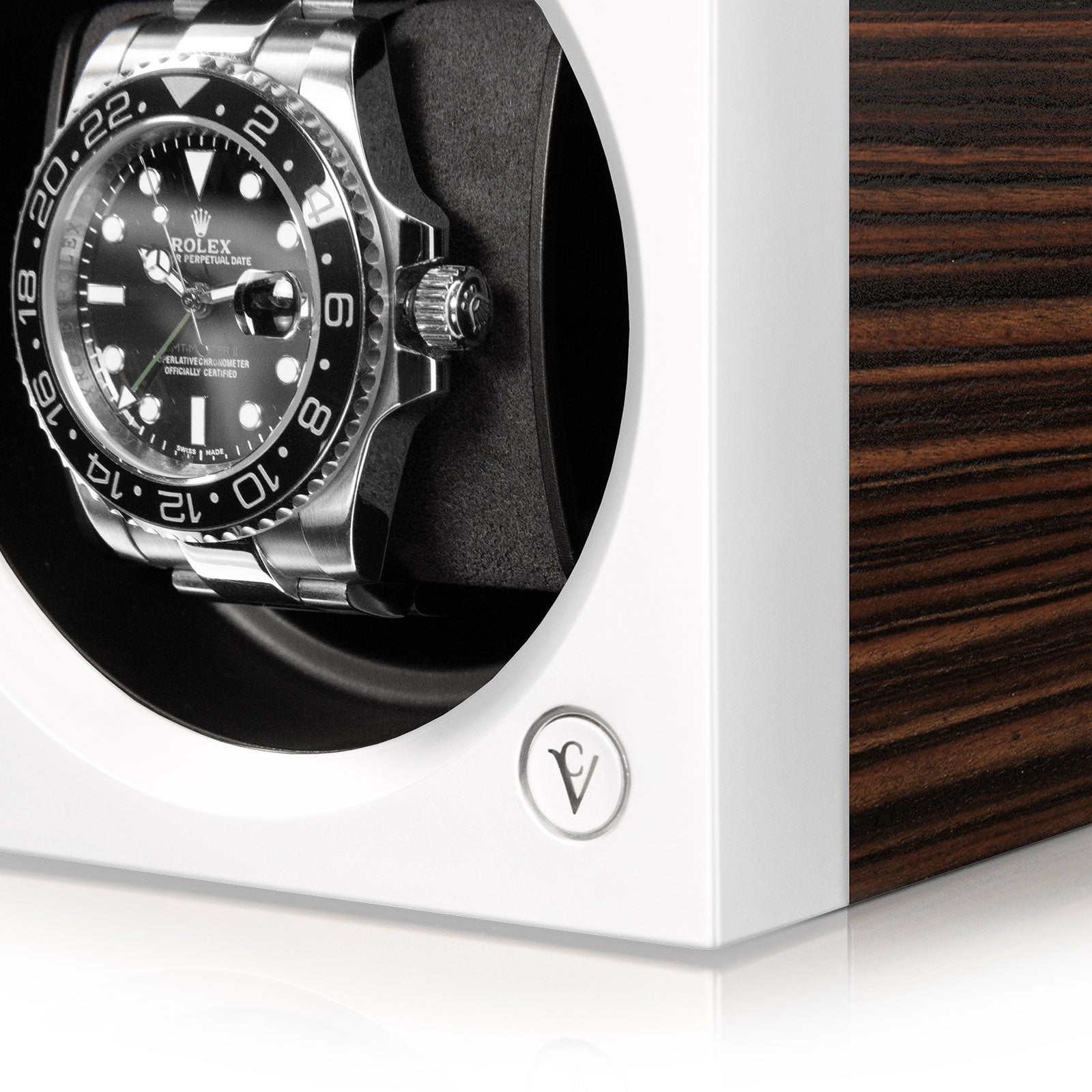 The grain of wood is as individual as a fingerprint. A pattern created by time itself. The transition between the warm brown tones and dark stripes of the Ebony veneer is particularly striking. The Argento version, whose deep black oak wood is interspersed with a fine silver grain, shows just how fascinating contrasts can be.