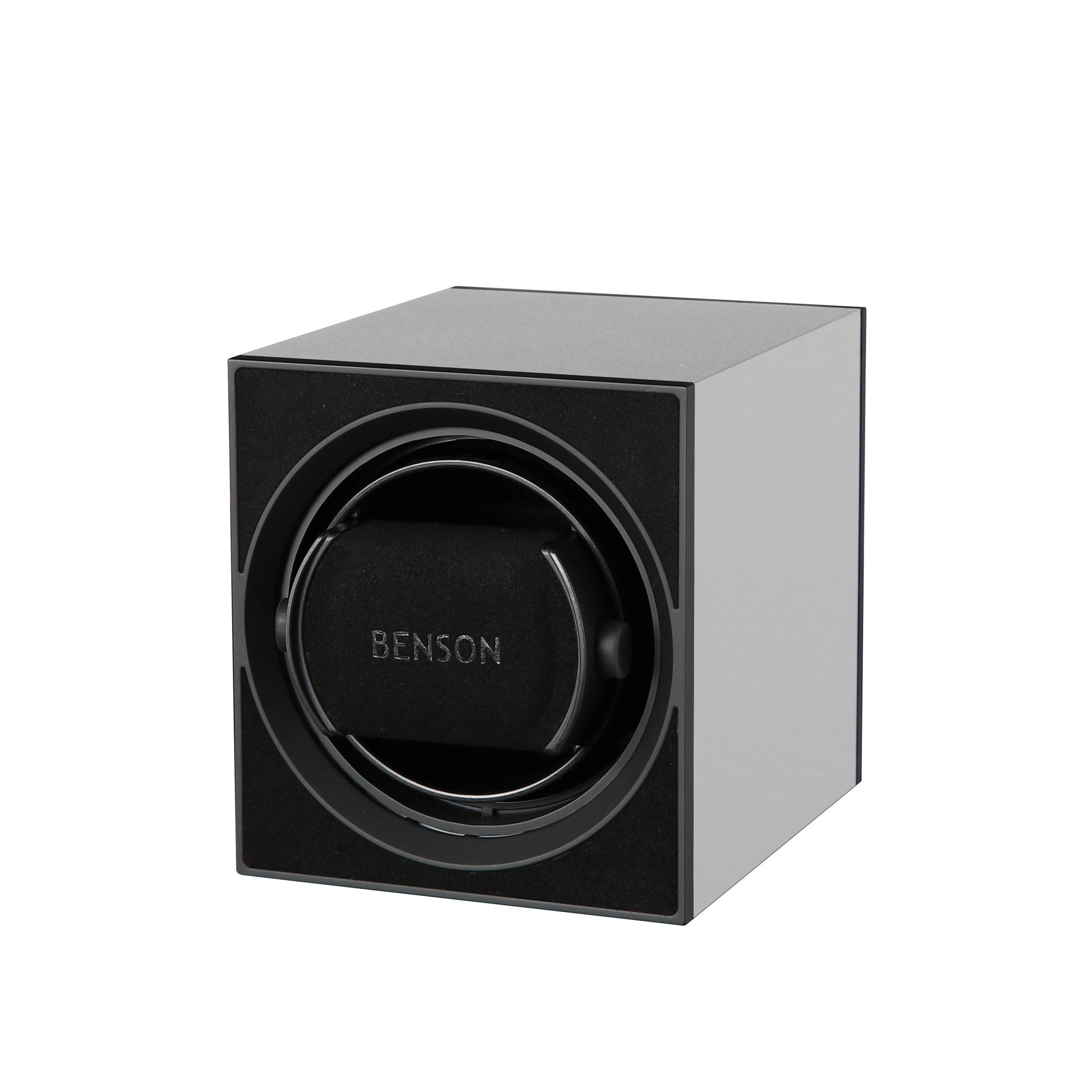 Benson proudly presents its latest generation of Compact Aluminum watch winders. This new series of watch winders has a modern design, is compact and contains excellent features. These new Benson Compact Aluminum watch winders provide any automatic watch, regardless of brand or model, with sufficient energy completely safely and easily so that the watch is immediately ready to wear. The advantages of the Benson Compact Aluminum watch winders are the excellent price/quality ratio, high functionality and beautiful finish. Each model can be fully configured in terms of direction of rotation and number of revolutions per day. In addition, an important advantage is that this Benson Compact Aluminum 1 Black watch winder functions for +- 6-9 months on one set of batteries. The flexible watch holder ensures that large but also smaller watches click into place in the watch winder for optimal safety of the watch. The special LED lighting ensures that you can also see
