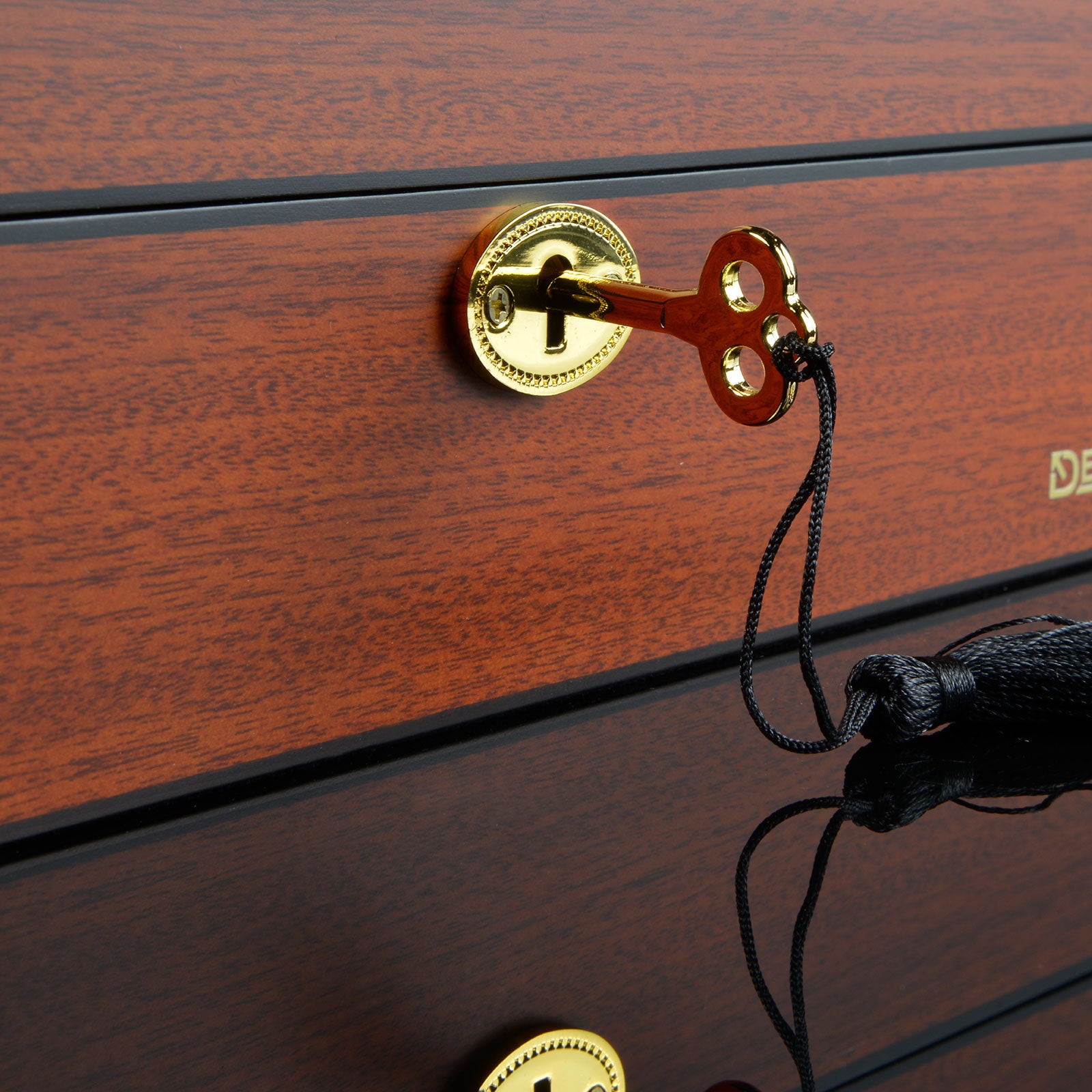 Perfect watch storage is a priority for watch lovers and watch collectors. The watch boxes of the Auckland series are a true classic of watch storage. The combination of reddish-brown veneer in cherry look with black contrasting edges creates a sense of classic elegance in any environment. The soft cushions of the interior are suitable for almost all watches. The integrated lock protects your watches against unauthorized access at all times.