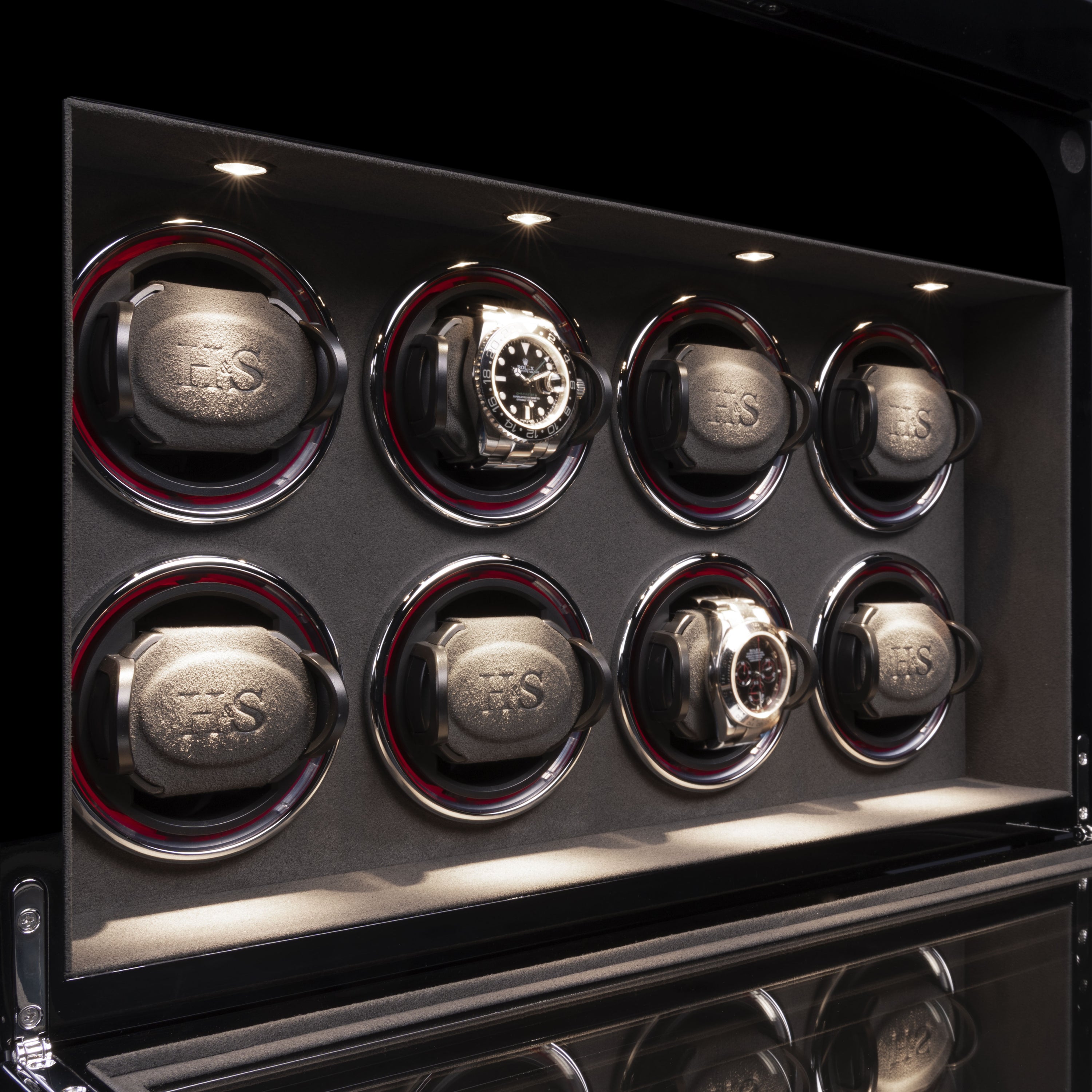 Le Denver 8 de Heisse & Söhne est un remontoir et une solution de rangement de montres de luxe pour les vastes collections de montres, alliant technologie de pointe, design raffiné et sécurité maximale.