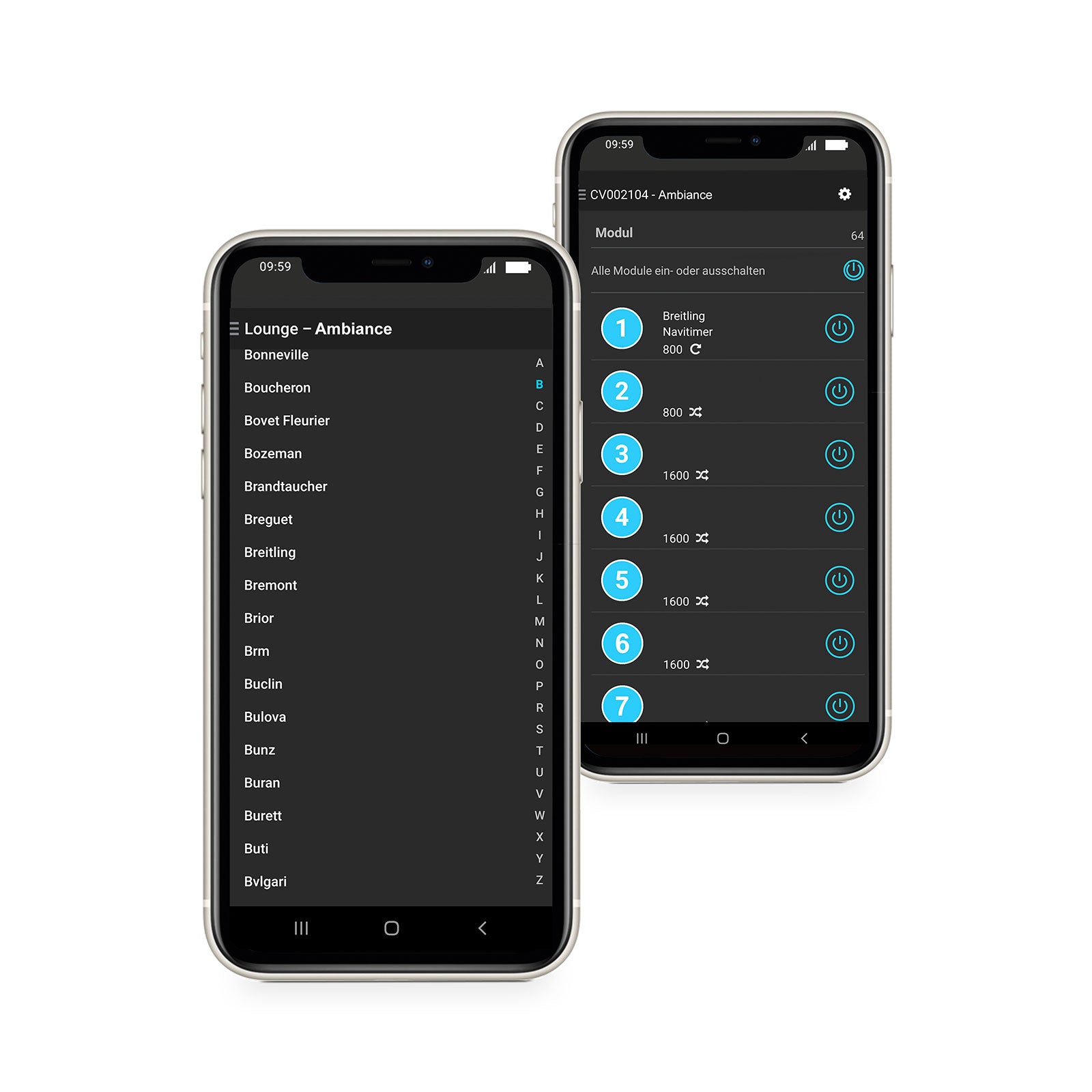 L'application contrôle les remontoirs via Bluetooth depuis un téléphone portable. Les réglages peuvent être effectués, activés ou désactivés de manière intuitive, sans affichage gênant sur le remontoir.
