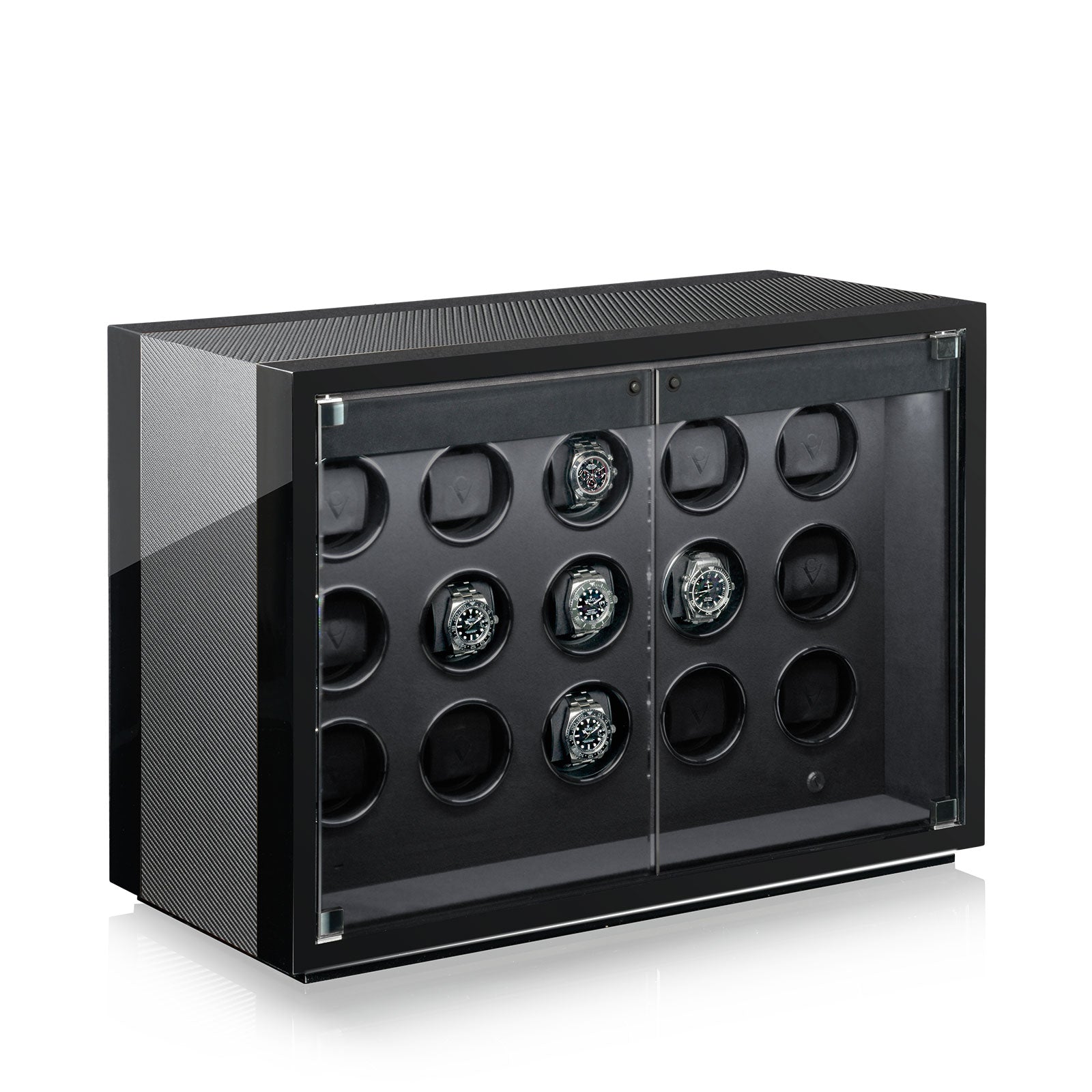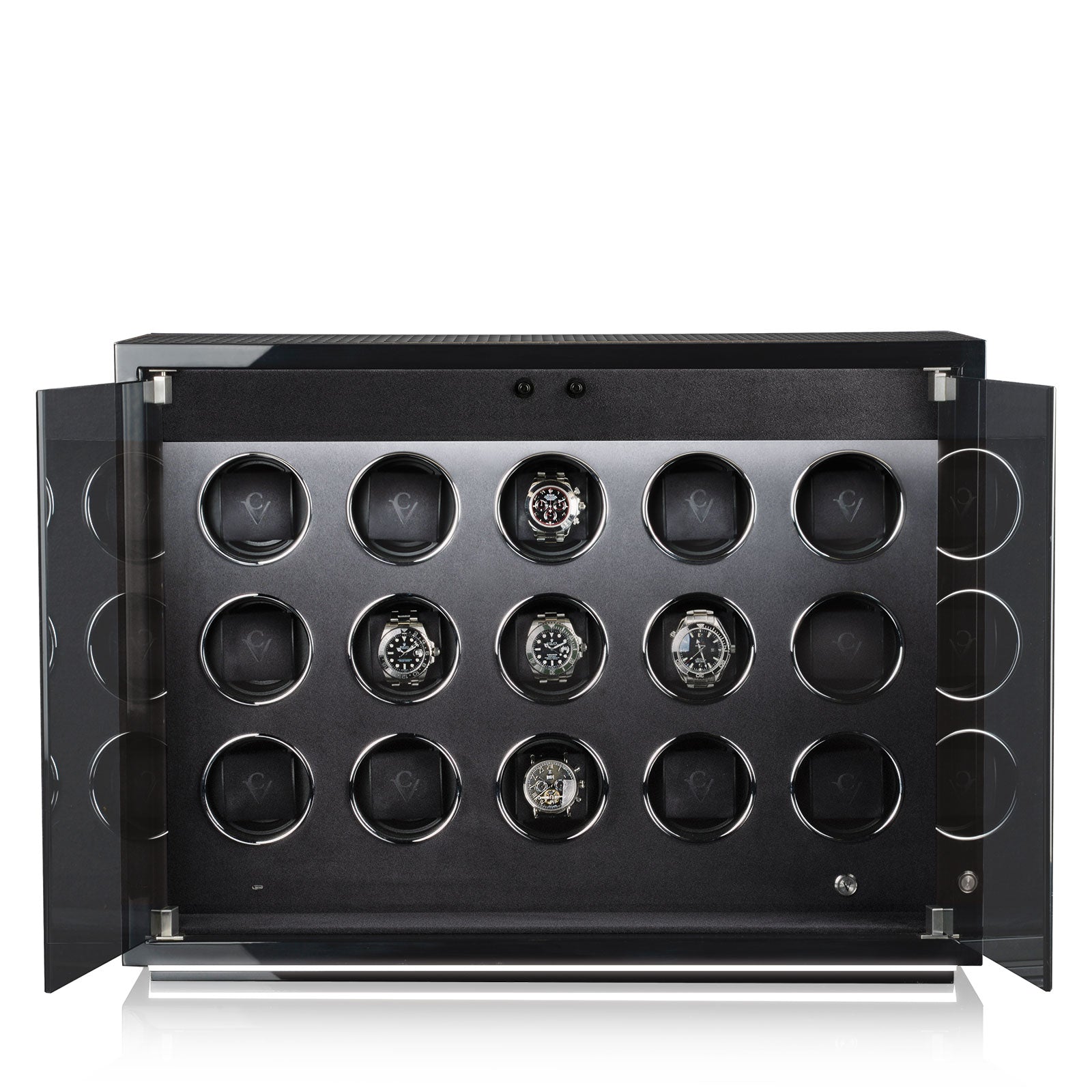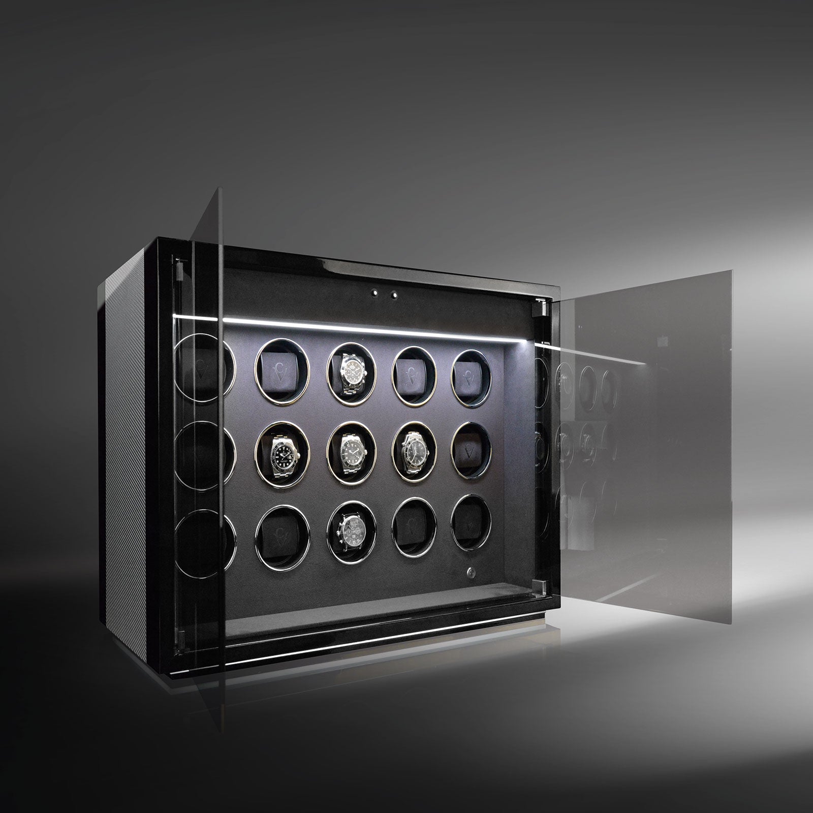 L'éclairage LED, réglable sur 16 niveaux, illumine l'intérieur du remontoir et met en valeur vos montres avec style.